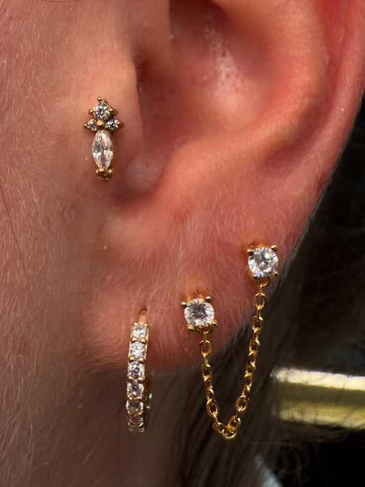 Puce d'Oreille Double Strass Chaînette