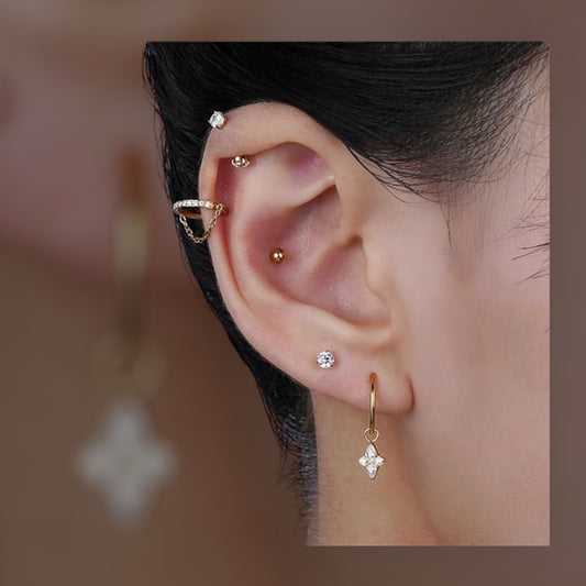 Élégance absolue et harmonie parfaite. Nos parures de piercings en titane associent plusieurs bijoux assortis pour un rendu raffiné et cohérent. Un équilibre entre style, confort et brillance signé CoSteel Jewelry.
