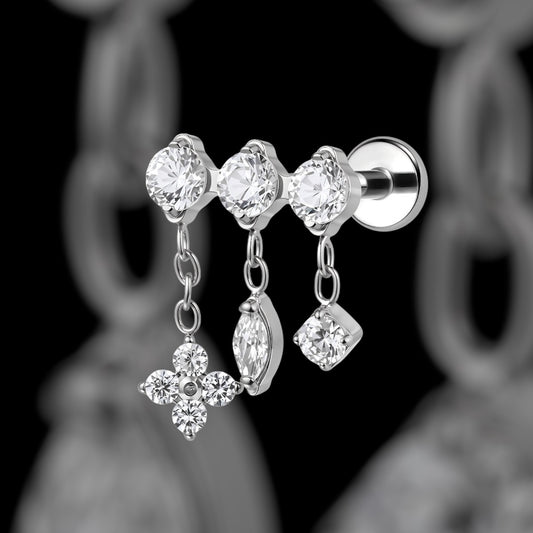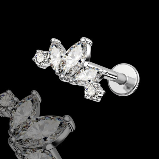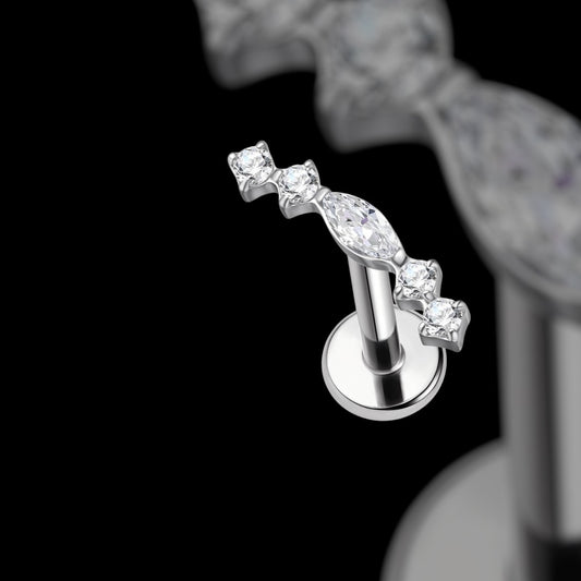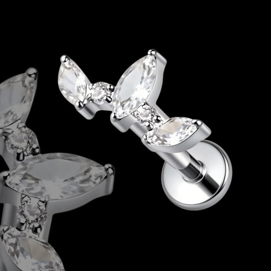 Discret et moderne, le piercing flat en titane illumine l’oreille avec subtilité tout en garantissant légèreté et durabilité.