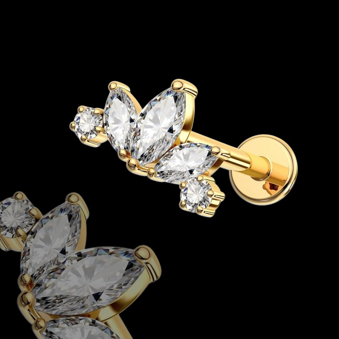 Description du Bijoux PiercingBijoux piercing labret strass Iris est élégant et très raffiné. Bijoux Piercing labret en titane orné de strass, disponible en PVD Gold et Silver. Bijoux piercing Labret strass est le choix parfait pour ceux qui recherchent un ajout étincellant et élégant à leur oreille. Conçu spécialement pour l'oreille, il est le bijoux piercing de type labret parfait pour un piercing d'oreille qu'il mettra en valeur avec finesse.