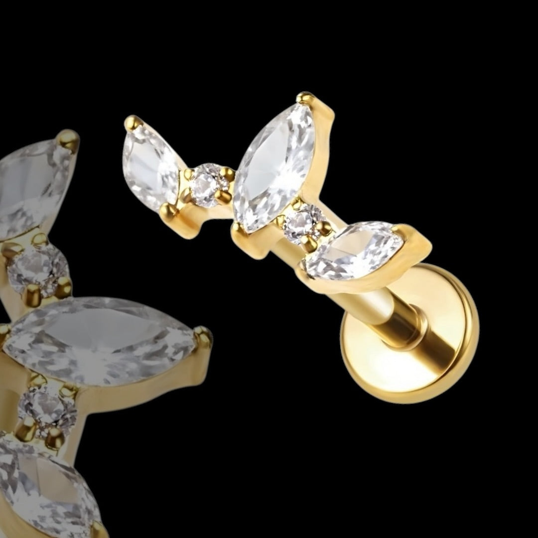 Description du Bijoux PiercingBijoux piercing labret strass Olya est élégant et très raffiné. Bijoux Piercing labret en titane orné de strass, disponible en PVD Gold et Silver. Bijoux piercing Labret strass est le choix parfait pour ceux qui recherchent un ajout étincellant et élégant à leur oreille. Conçu spécialement pour l'oreille, il est le bijoux piercing de type labret parfait pour un piercing d'oreille qu'il mettra en valeur avec finesse.