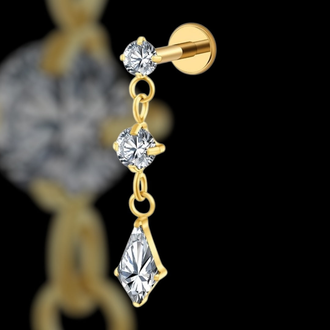 Labret pampille losange strass - bijoux piercing en titane de qualité
